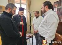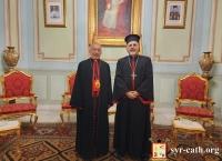 رافق غبطتَه في هذه الزيارة أصحابُ السيادة: مار برنابا يوسف حبش، ومار أفرام يوسف عبّا، ومار فلابيانوس رامي قبلان، والأب باولو كرّارو من أبرشية كريمونا اللاتينية في إيطاليا، والأب إيفان القسّ موسى.