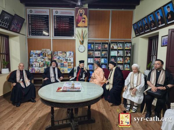 استُقبِلَ غبطتُه بترحيب حارّ وحفاوة بالغة من قِبَل صاحب السيادة مار قوريلّوس توماس مطران أبرشية تيروفالا، متقدّماً إكليروس أبرشيته، ومعبّراً عن سروره الكبير باستقبال غبطته في دار المطرانية.