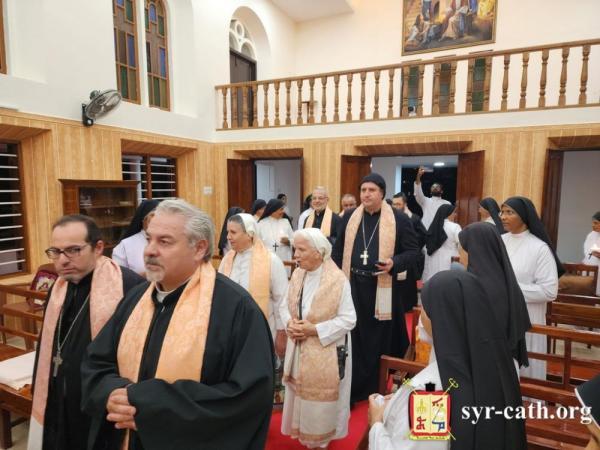 وفي الكنيسة، أقام غبطته صلاةً خاصّة بمناسبة الذكرى المئوية لتأسيس رهبانية راهبات التشبُّه بالمسيح (بيت عنيا). ثمّ سار بتطواف حبري، يتقدّمه الأساقفة الكهنة والراهبات، إلى الباحة الداخلية للدير، حيث أقام غبطته الصلاة وتشمشت (خدمة) الموتى أمام أضرحة الراهبات الراقدات.