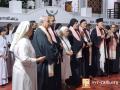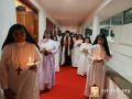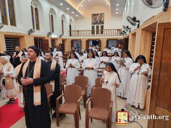 أمام المدخل الخارجي للدير، استُقبِلَ غبطتُه من قِبَل الأمّ الرئيسة والأخوات الراهبات، فدخل بموكب حبري مهيب إلى كنيسة الدير، على أنغام نشيد استقبال رؤساء الاحبار.