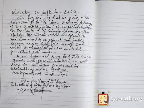 وقبل المغادرة، دوّن غبطته كلمة شكر ومحبّة على السجلّ الرسمي للدير.