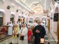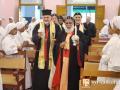 استُقبِلَ صاحبا الغبطة من قِبَل الأمّ الرئيسة والأخوات الراهبات أمام المدخل الخارجي للدير، فدخلا بموكب حبري مهيب إلى كنيسة الدير، على أنغام نشيد استقبال رؤساء الاحبار.