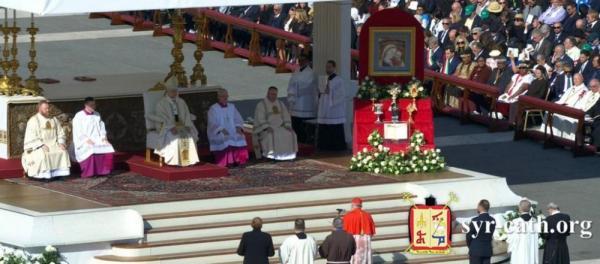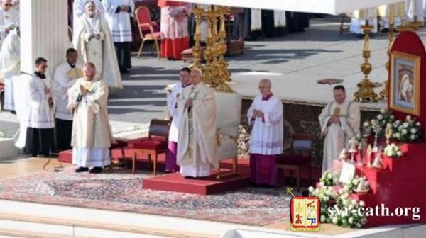 في نهاية القداس الإلهي، وقبل تلاوة صلاة التبشير الملائكي، وجّه قداسة البابا كلمة قال فيها: "أيّها الإخوة والأخوات الأعزّاء، أتوجّه بتحيّة من القلب إليكم جميعاً، أنتم الذين شاركتم في هذا الإحتفال الذي كان عيداً عظيماً للقداسة! أشكر البطاركة والكرادلة والأساقفة الحاضرين، كما أعبّر عن امتناني لرئيس الجمهورية الإيطالية ورئيس جمهورية لبنان وللوفود الرسمية، ولا سيّما للوفدين اللذين قَدِما من أرمينيا وفنزويلا. أرحّب بفرح ببنات المؤسِّسات اللواتي أُعلِنت قداستهنّ اليوم، وبالجماعات والجمعيات المختلفة المستوحاة من مواهب القداسة التي تركها القديسون الجدد. شكراً للجميع على مشاركتكم المفعَمة بالإيمان والتقوى! كما أوجّه أيضاً تحيّتي إلى سائر الحجّاج الحاضرين، ولا سيّما إلى "أخوية سيّد العجائب" التي أحيت مسيرتها الإحتفالية التقليدية السنوية".