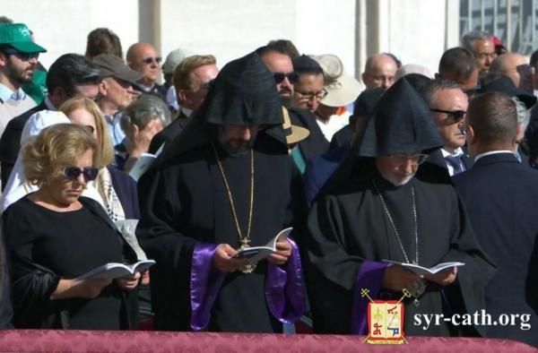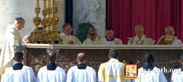 عاون قداستَه صاحبُ الغبطة روفائيل بيدروس الحادي والعشرون ميناسيان كاثوليكوس بطريرك كيليكيا للأرمن الكاثوليك، وشارك في هذا الإحتفال الروحي المهيب أيضاً صاحب الغبطة الكردينال مار بشارة بطرس الراعي بطريرك أنطاكية وسائر المشرق للموارنة، وعدد من الكرادلة والأساقفة والكهنة والرهبان والراهبات من مختلف الكنائس والقارّات والبلدان، بحضور ومشاركة الآلاف من المؤمنين الذين ضاقت بهم ساحة القديس بطرس والساحات المحيطة، من بينهم وفد كبير من الكنيسة الأرمنية الكاثوليكية الشقيقة من لبنان وأرمينيا وبلدان أخرى. وقد رافق غبطةَ أبينا البطريرك للمشاركة في هذا الإحتفال صاحبُ السيادة مار فلابيانوس رامي قبلان، والمونسنيور حبيب مراد.
