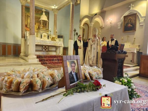 وفي نهاية القداس، أقام غبطته تشمشت (خدمة) الموتى المؤمنين، راحةً لنفس المرحوم جورج مدوَّر، بمناسبة مرور أربعين يوماً على وفاته. رحمه الله.