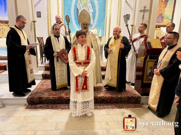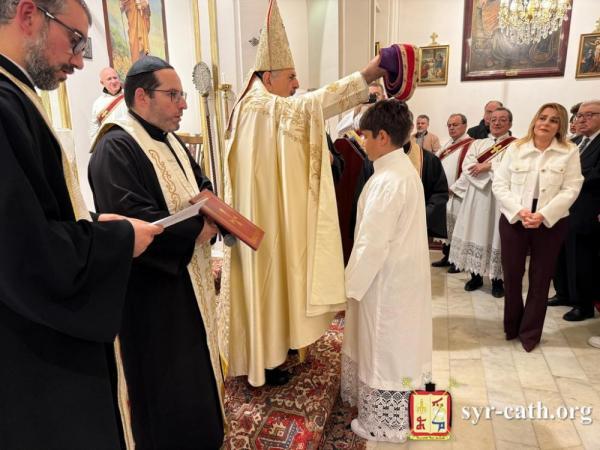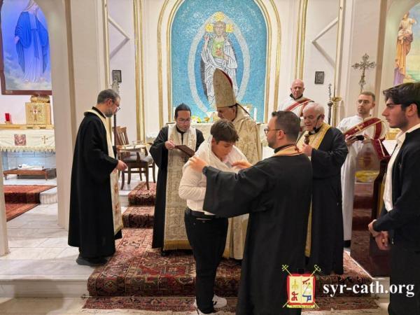 وقبل المناولة، قام غبطته برسامة الشابّ استيفان تبسي شمّاساً قارئاً، بحسب الطقس السرياني الأنطاكي، في جوّ روحي عابق بالفرح والبهجة، وسط تصفيق الحضور وزغاريد النساء.