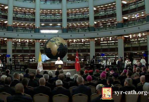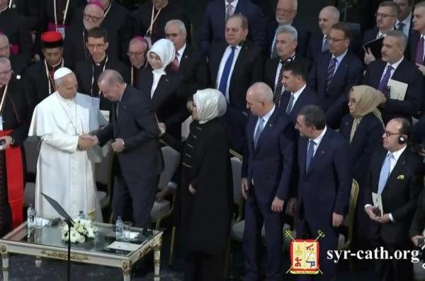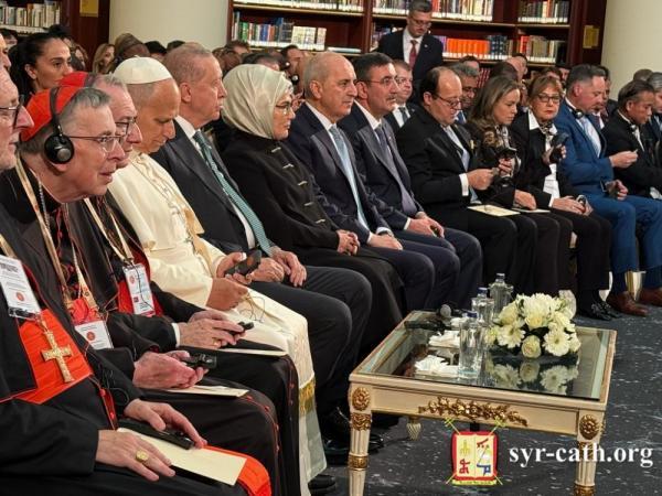 في تمام الساعة الثالثة والنصف من بعد ظهر يوم الخميس ٢٧ تشرين الثاني ٢٠٢٥، شارك غبطة أبينا البطريرك مار اغناطيوس يوسف الثالث يونان بطريرك السريان الكاثوليك الأنطاكي، في اللقاء الذي عقده قداسة البابا لاون الرابع عشر مع السلطات وممثّلي المجتمع المدني والسلك الدبلوماسي، بدعوة من فخامة رئيس الجمهورية التركية رجب طيّب أردوغان، وذلك في القصر الرئاسي في أنقرة، تركيا.