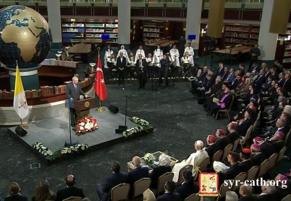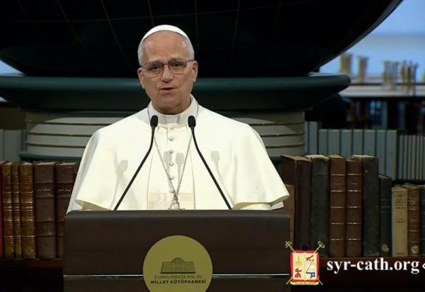 غبطة أبينا البطريرك يشارك في لقاء قداسة البابا لاون الرابع عشر مع السلطات وممثّلي المجتمع المدني والسلك الدبلوماسي في أنقرة، بدعوة من الرئيس التركي رجب طيّب أردوغان، تركيا