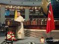 ولفت قداسته إلى "أهمّية العدالة والرحمة والعطف والتضامن"، واصفا إيّاها "بمعايير حقيقية للتنمية. ففي مجتمع للدين فيه دور مرئي، مثل المجتمع التركي، من الجوهري تكريم كرامة أبناء الله وحرّيتهم جميعاً. فجميعنا أبناء الله، وهذا له تبعات شخصية واجتماعية وسياسية. ومَن يطيعون بقلوبهم مشيئة الله، يعزّزون الخير العام واحترام الجميع".