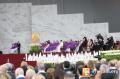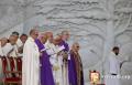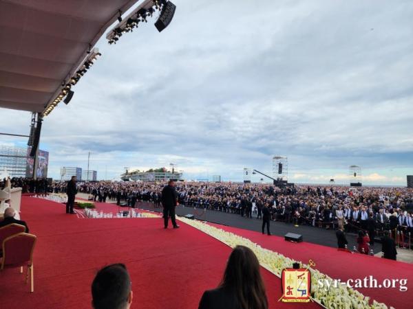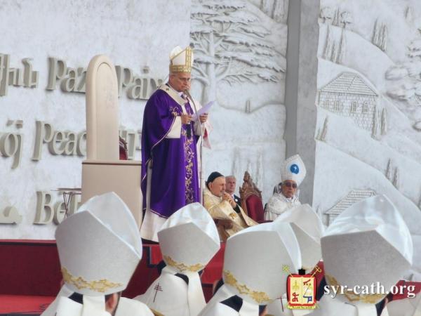 وختم قداسته موعظته قائلاً: "أيُّها الإخوة والأخوات، أودُّ أنا أيضاً أن أقول وأُردِّد كلام يسوع: "أحمدُكَ يا أبَتِ". أرفع شكري لله لأنّي قضيتُ هذه الأيّام معكم، وأنا أحمل في قلبي آلامكم وآمالكم. أصلّي من أجلكم، حتّى ينير الإيمان بيسوع المسيح، شمس العدل والبِرّ، أرضَ المشرق هذه، وحتَّى تحافظ، بقوَّته تعالى، على الرجاء الذي لا غروب له".
