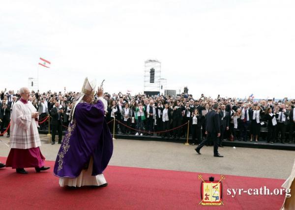 وقبل الختام، وجّه غبطة البطريرك مار بشارة بطرس الراعي كلمة شكر لقداسة البابا على حضوره الأبوي بهذه الزيارة التاريخية التي قام بها إلى لبنان، باسم أصحاب الغبطة البطاركة، ومجلس البطاركة والأساقفة الكاثوليك في لبنان، وكلّ الطوائف، ولبنان بأسره، لافتاً إلى أنّ قدوم قداسته ينير أفكارنا ويحرّك جهودنا للعمل من أجل السلام والأخوّة والحوار بين كلّ أبناء وبنات هذه الأرض، وأنّ كلماته المشبَّعة بالروح القدس تحثّنا على متابعة أداء الشهادة للرب يسوع، وحمل مشعل العدالة والرجاء والسلام، وبناء الجسور، وتشجيع الوحدة، وخدمة الخير العام لبلدنا وللمنطقة، شاكراً قداسته على تضامنه وتشجيعه الشبيبة والعائلات، وبلسمَتِه جراح الذين يعانون ويتألّمون، واعداً قداسته بصلاة الجميع من أجل حبريته ومن أجل الكنيسة الجامعة، مؤكّداً التعلُّق البنوي بقداسته، وسائلاً الله أن يحفظه رسول سلامٍ في ظلّ حماية العذراء مريم سيّدة لبنان.