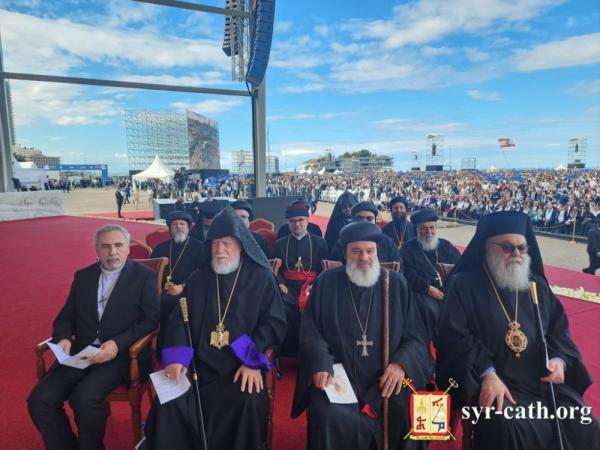 ومن كنيستنا السريانية الكاثوليكية شارك أيضاً في هذا القداس: صاحبا السيادة مار متياس شارل مراد، ومار اسحق جول بطرس، والخوراسقف عماد حنّا الشيخ، والمونسنيور حبيب مراد كونه عضو اللجنة الكنسية المركزية لزيارة قداسة البابا، والأب كريم كلش، والآباء الكهنة من أبرشية بيروت البطريركية ومن دير الشرفة، والراهبات الأفراميات، والطلاب الإكليريكيون من إكليريكية سيّدة النجاة البطريركية بدير الشرفة، وجموع غفيرة من المؤمنين من مختلف رعايا أبرشية بيروت البطريركية، ومن إرسالية العائلة المقدسة للمهجَّرين العراقيين في لبنان، ومن سوريا والعراق.