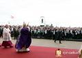 وبعدما توقّف قداسته لبرهة صلاة أمام صورة كبيرة للعذراء مريم، واضعاً لبنان والشرق تحت حمايتها الوالدية، منح قداسته البركة الختامية. ثمّ غادر مخترقاً الحشود الجماهيرية التي تهافتت لنيل بركته، فيما الجميع يحيّون قداسته ويلهجون بشكره على زيارته الأبوية، وسط جوٍّ من الفرح الروحي والتأثّر البالغ.