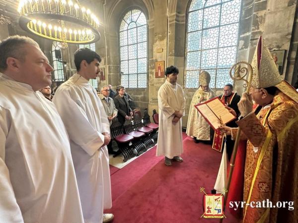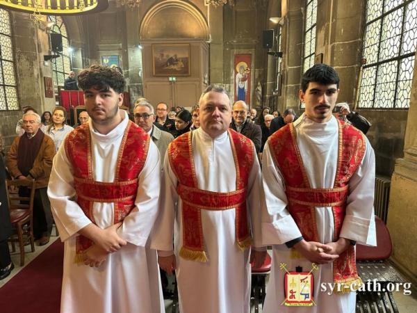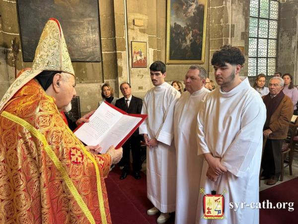 ونوّه غبطته بأنّنا "نبتهج ونفرح اليوم كثيراً لأنّ أحبّاءنا الشباب، هنري وفانسان وألكسندر، يتقدّمون بكلّ شجاعة وفخر كي يخدموا القداس، ويخدموا المذبح بدرجتَي ܡܙܰܡܪ̈ܳܢܶܐ المرنّمين، وܩܳܪ̈ܽܘܝܶܐ القرّاء: المرنّمأي الذي يرنّم الأناشيد الروحية، وبالأخصّ المزامير، لأنّ المزمور يعني الترنيمة بالسريانية وبالعبرية.والقارئ أي الذي يقرأ الكتاب المقدس، لا سيّما العهد القديم وبعض الرسائل من مار بولس. نفتخر بهم لأنّهم تقدّموا كي يشاركوا الكنيسة، كاهن الرعية المونسنيور بيار، الشمامسة، مجلس الرعية والمؤمنين، يشاركوا في مديح الرب وفي إعلان محبّتهم له، هو إلهنا وفادينا. إنّهم فخورون بإيمانهم المسيحي وبعلاقتهم بالرب يسوع مخلّصنا، ويودّون أن يكونوا دائماً مخلصين ليسوع ولكنيسته، رغم كلّ ما يحصل في العالم، ولا سيّما الصعوبات والتحدّيات التي يواجهونها في مسيرة حياتهم".