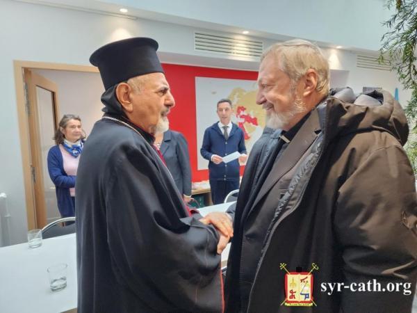 بدايةً رحّب المونسنيور هوغ دو وويلمون بغبطته، معبّراً عن فرحه باللقاء به واعتزازه بكلّ ما يقوم به غبطته من رعاية صالحة وخدمة روحية مميَّزة لأبناء الكنيسة السريانية في الشرق وفي بلاد الإنتشار، وبخاصّة في فرنسا، متمنّياً له المزيد من العطاء بالصحّة والعمر المديد.