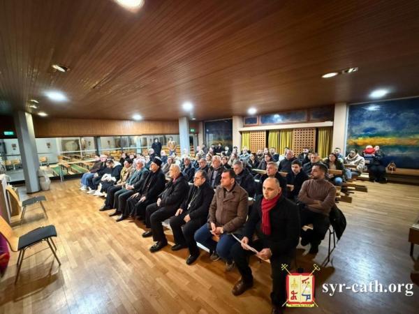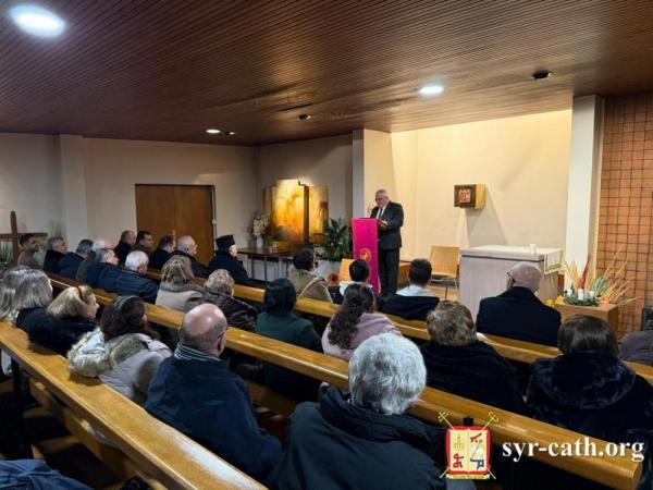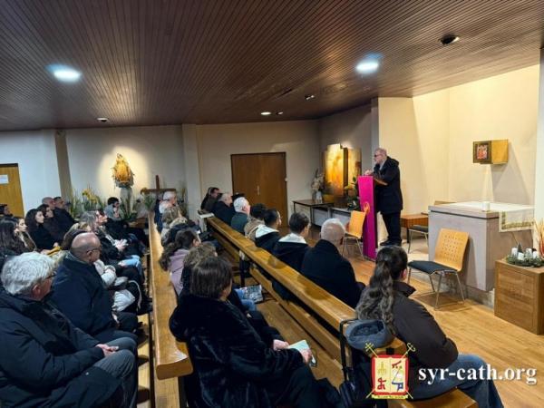 وأردف: "نرحّب بكم باسم هذه الأسرة السريانية التي تضمّ قرابة ألفَي مؤمن، أي: ألفَي قصّة حنين وآلام في الغربة، وألفَي ذاكرة كنيسة وأجراس وأعياد، وألفَي صلاة رُفِعَت باللغتين السريانية والعربية، وألفَي قلب لا يزال مؤمناً بأنّ الكنيسة لا تُقاس بالمكان، بل بالأمانة والإخلاص. وجودكم بيننا هذا المساء، يا صاحب الغبطة، هو تأكيد لنا أنّ كنيستنا الأمّ لم تنسَ أبناءها في الغربة، وأنّ بطريركيتنا ليست عنواناً جغرافياً في بيروت، بل قلباً ينبض على وقع قلب أبنائه حيثما كانوا وأينما وُجِدوا".