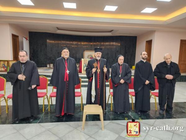 رافق غبطتَه صاحبُ السيادة مار أفرام يوسف عبّا، والمونسنيور حبيب مراد، والأب كريم كلش.