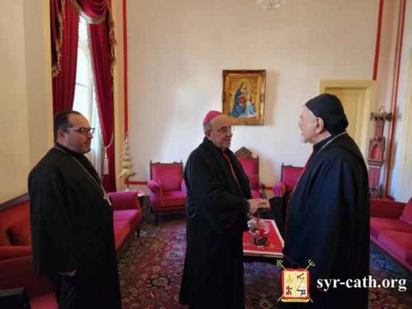 خلال اللقاء، قدّم سيادته التهاني القلبية لغبطته بمناسبة أعياد الميلاد ورأس السنة والدنح، باسم الكنيسة الكلدانية في لبنان، داعياً لغبطته بالصحّة والعافية والعمر المديد، ودوام النجاح والتوفيق في رعاية الكنيسة السريانية الكاثوليكية.