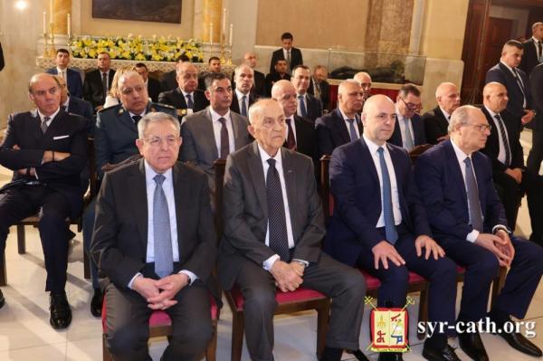 حضر القداس فخامة رئيس الجمهورية اللبنانية العماد جوزاف عون وعقيلته اللبنانية الأولى السيّدة نعمت عون، ودولة رئيس مجلس النواب الأستاذ نبيه برّي، ودولة رئيس مجلس الوزراء القاضي نوّاف سلام وعقيلته السيّدة سحر سلام، ووزراء ونوّاب حاليون وسابقون، وشخصيات ديبلوماسية وسياسية وعسكرية وأمنية وقضائية ونقابية واجتماعية وإعلامية، وفعاليات، وجموع غفيرة من المؤمنين.