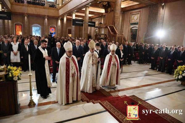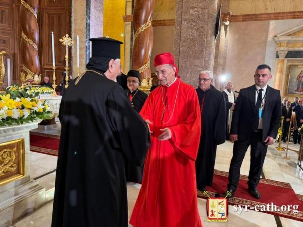 وبعد البركة الختامية، قدّم غبطة أبينا البطريرك مار اغناطيوس يوسف الثالث يونان التهاني الأخوية بهذه المناسبة المباركة إلى غبطة أخيه البطريرك بشارة الراعي وسيادة المطران بولس عبد الساتر، متمنّياً للكنيسة الشقيقة السريانية المارونية دوام الازدهار.