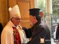 ثمّ تقبّل فخامة الرئيس واللبنانية الأولى التهاني، جنباً إلى جنب مع أصحاب الغبطة وسيادة المطران بولس عبد الساتر، في قاعة الكاتدرائية، حيث تقدّم للتهنئة جميع الحاضرين في هذا القداس الاحتفالي، من أساقفة وكهنة وشخصيات رسمية وجموع المؤمنين.
