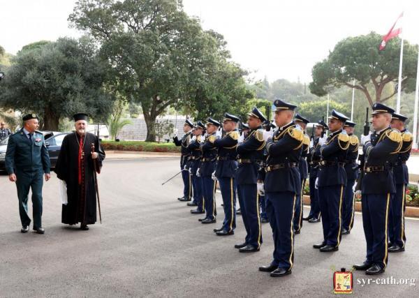 فور وصول غبطته إلى أمام المدخل الخارجي للقصر، استعرض ثلّةَ التشريفات من الحرس الجمهوري التي استقبلَتْه وأدّت له التحيّة والإكرام، بحسب العادة المتَّبَعة في استقبال رؤساء الطوائف وكبار الزوّار من رؤساء دول وحكومات.