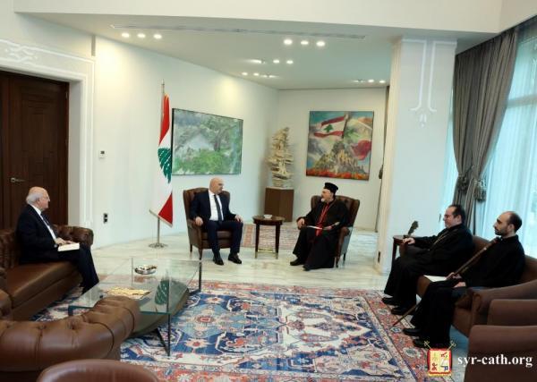 من جهته، أعرب غبطة أبينا البطريرك عن سروره بزيارة فخامته، مجدِّداً التهنئة بعيد القديس مارون، باسم الكنيسة السريانية الكاثوليكية، ضارعاً إلى الله، بشفاعة هذا القديس، أن يحفظ فخامته بالصحّة والعافية، ويحمي لبنان من كلّ سوء، ويمنّ على هذا البلد والمنطقة والعالم بالسلام والأمان والإستقرار.