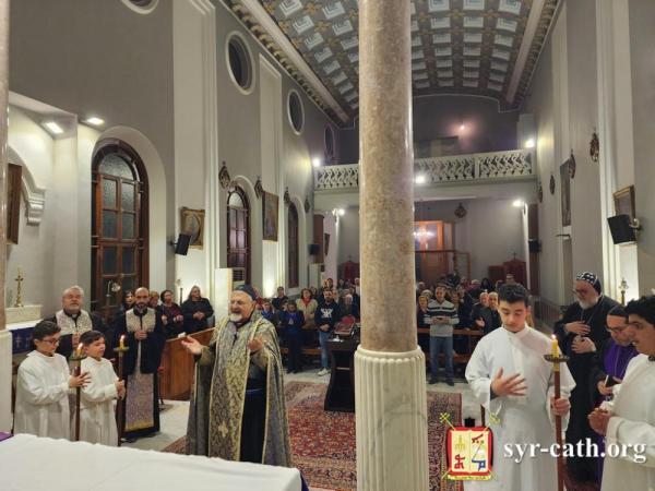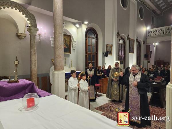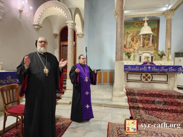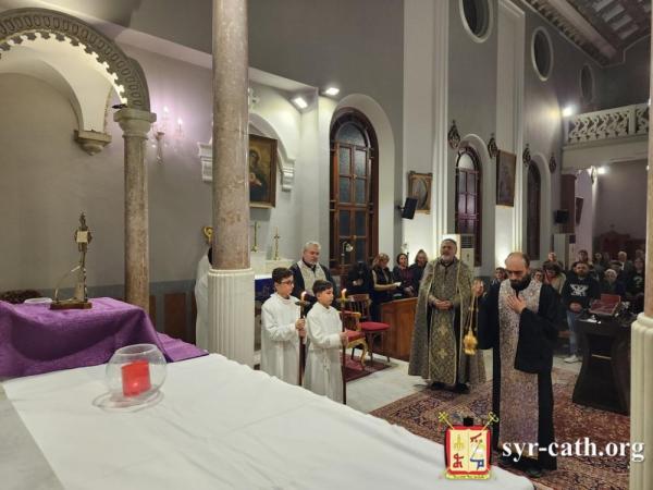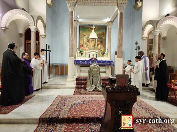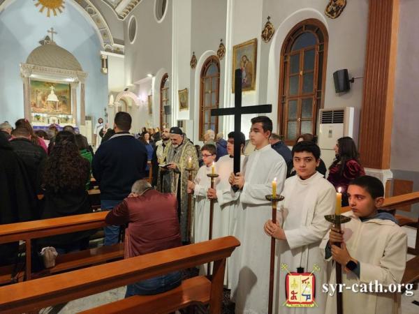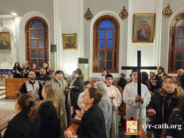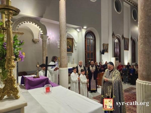 خلال الرتبة، طاف غبطته داخل الكنيسة متأمّلاً بمراحل درب الصليب، فيما تلا المؤمنون الترانيم العذبة الخاصّة بهذه الرتبة بلحن الآلام. ثمّ رنّم الجميع ترنيمة السجود للصليب ܣܓܕܝܢܢ ܠܨܠܝܒܐ (فلنسجد للصليب).