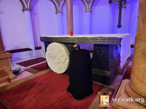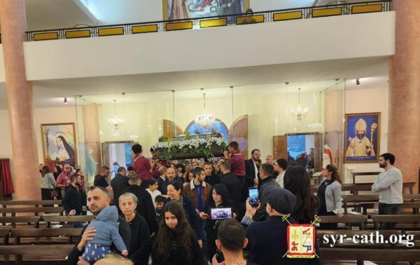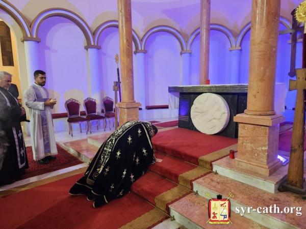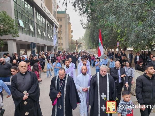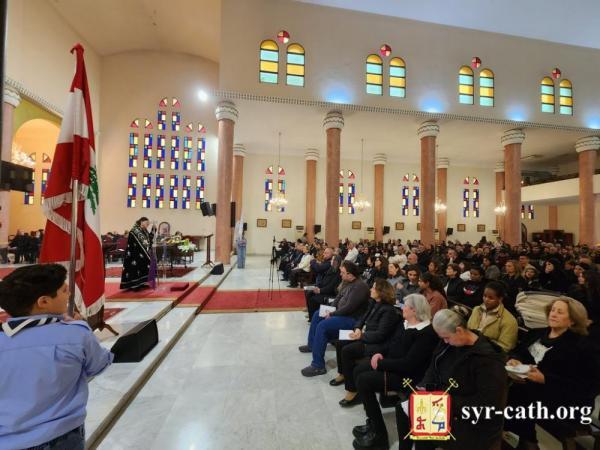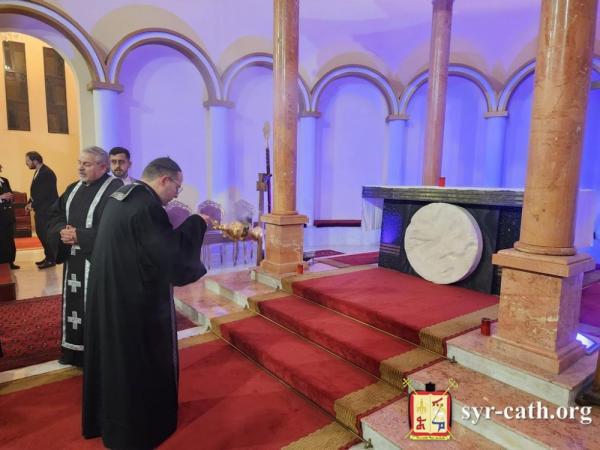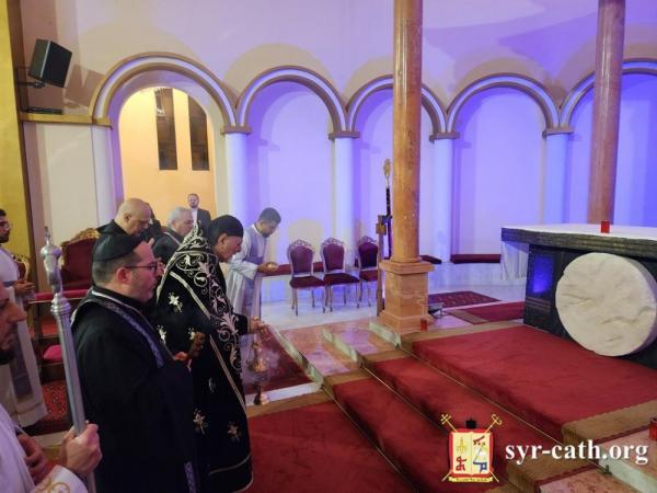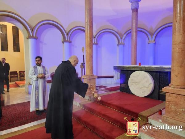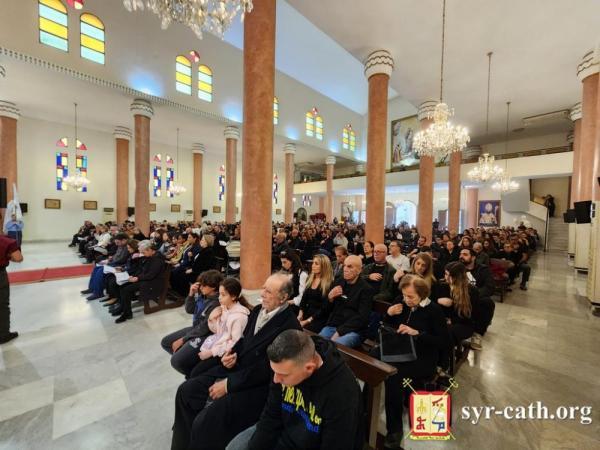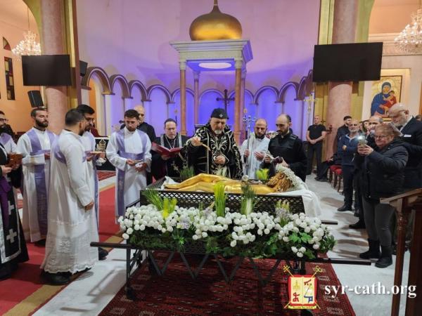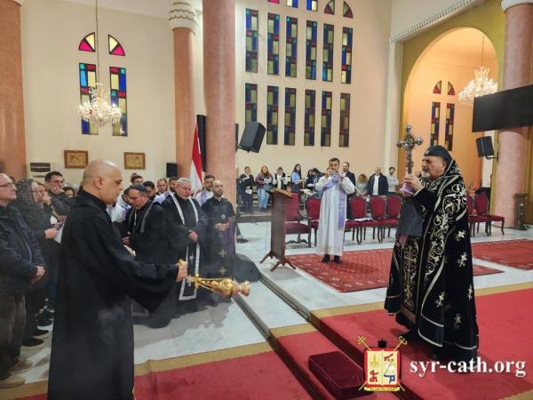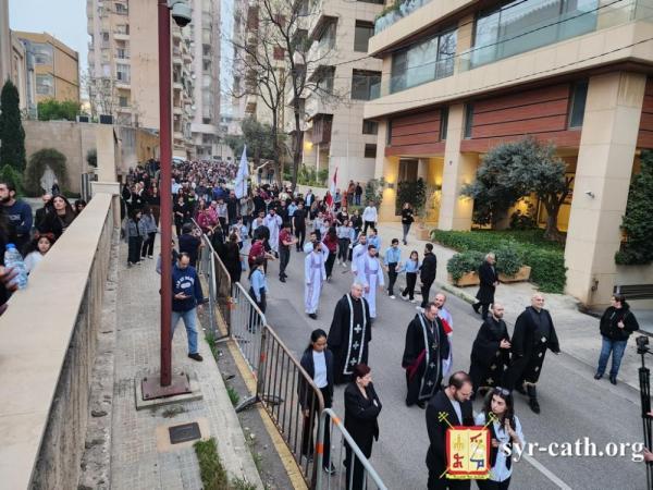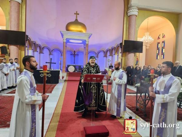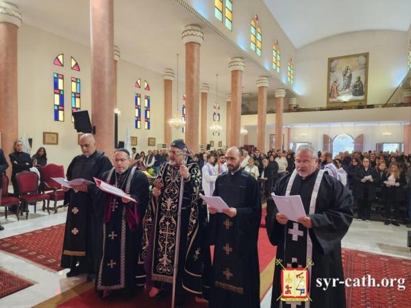 ونوّه غبطته "بأنّكم بالتأكيد تابعتم على وسائل التواصل الإجتماعي والتلفزيون وقائع الصلوات والأناشيد والرتب التي ينفرد بها هذا اليوم. وها أنتم تشاركون شخصياً بهذه الرتبة السرّية العميقة المعاني. رتّلنا مع الجوقة أناشيد سريانية قديمة، فضّلْنا أن نحافظ عليها، لأنّ هذه الأناشيد هي إرثنا السرياني، ونحن مدعوون أن نعيش هذا الإرث، ولا نخجل أن نتعلّمه وننشده ونعيشه، ولو كنّا في مجتمعات تفرض علينا لغتها. لكن، نحن السريان، علينا أن نحافظ على هذا الإرث الذي أتانا من قرون قديمة، ويعبِّر عن غنى طقسنا السرياني". رتّلنا «ܨܠܺܝܒܳܟ ܚܰܝܳܐ ܡܫܺܝܚܳܐ ܐܰܠܳܗܳܐ ܕܺܝܠܰܢ܆ ܢܶܗܘܶܐ ܫܽܘܪܳܐ ܚܰܣܺܝܢܳܐ܆ ܠܥܺܕ̱ܬܳܐ ܕܒܳܟ ܐܶܚܕܰܬ݀ ܓܰܘܣܳܐ܆ ܘܬܶܫܬܰܘܙܰܒܝ̱ ܡܶܢ ܢܶܟܝ̈ܳܢܶܐ»، وترجمتها: "صليبكَ الحيّ، أيُّها المسيح إلهنا، هو سور حصين للكنيسة التي التجأت إليك كي تنقذها من المضرّات".