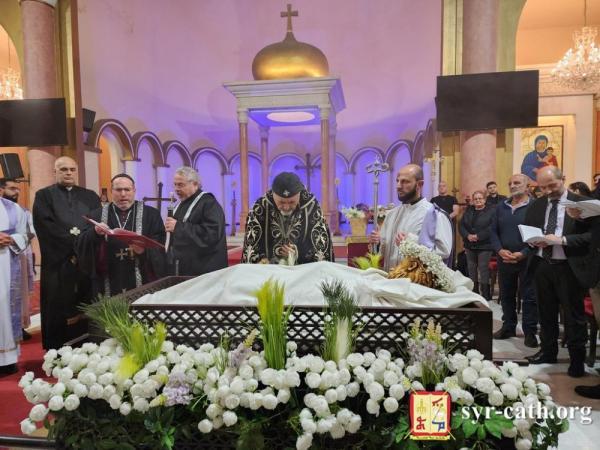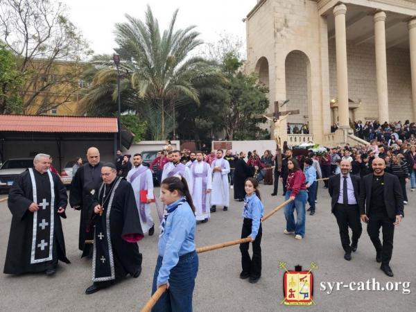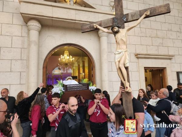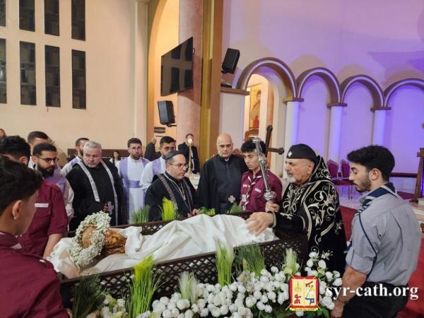 بعدئذٍ أقيم زيّاحٌ بنعش المسيح المصلوب داخل الكاتدرائية، ثمّ في ساحاتها، ليخرج الجميع في زيّاح مهيب في الشوارع المحيطة بالكاتدرائية. ثمّ مرَّ الجميع تحت النعش فنالوا البركة. وأقام غبطته رتبة دفن المصلوب، واضعاً إيّاه في قبرٍ خاصّ تحت المذبح بحسب التقليد العريق لكنيستنا السريانية، وختمَه وبخّره.