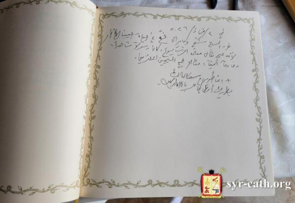 وبعد انتهاء الرتبة، دوّن غبطته في سجلّ التعزية الكلمة التالية: "نور المسيح شعّ وما يزال يشعّ في حياة حبيبنا الأخ نور لأنّه على مثال معلّمه الرب يسوع، كان رسولاً شاهداً، وخادماً أميناً، مثالاً لجميع المسيحيين الملتزمين".