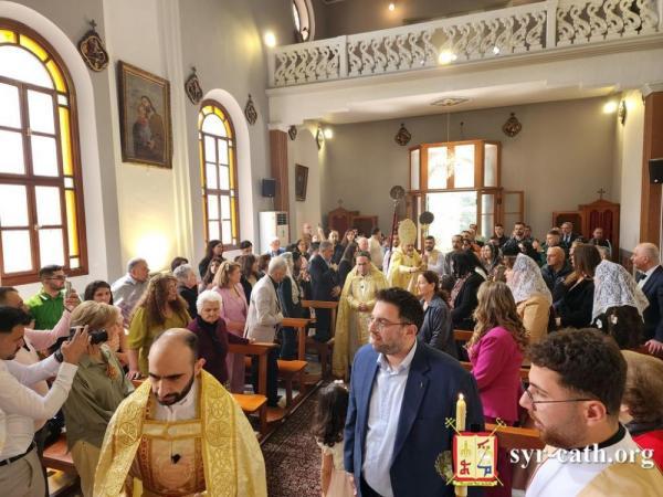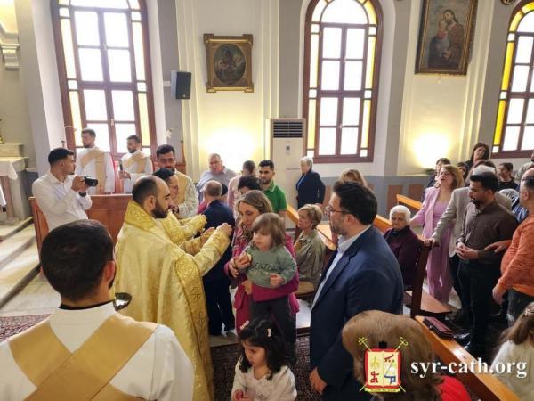 وبعدئذٍ استقبل غبطته الإكليروس والمؤمنين في الصالون البطريركي.
