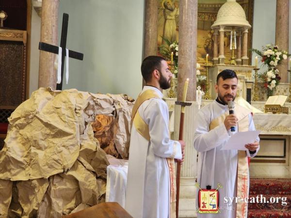 عاون غبطتَه الخوراسقف حبيب مراد، والأب كريم كلش، والأب طارق خيّاط، والأب موريس خوري، وخدم القداس والرتبة الشمامسة الإكليريكيون طلاب إكليريكية سيّدة النجاة البطريركية بدير الشرفة، بحضور ومشاركة جموع غفيرة من المؤمنين من مختلف الرعايا في أبرشية بيروت البطريركية، ومن إرسالية العائلة المقدسة للمهجَّرين العراقيين في لبنان، ضاقت بهم الكنيسة.