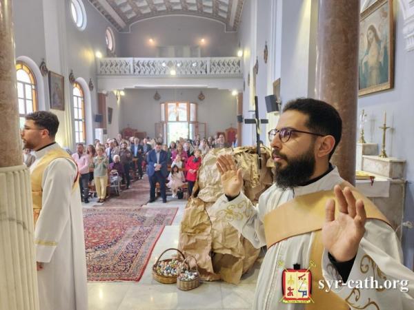 وقبل البركة الختامية، تكلّم الخوراسقف حبيب مراد، فوجّه التهاني البنوية باسم جميع الحاضرين إلى غبطته بمناسبة هذا العيد العظيم، عيد قيامة الرب يسوع من بين الأموات، عربون قيامتنا جميعاً، سائلاً الله أن يديمه ويحفظه بالصحّة والعافية، كي يتابع مسيرة خدمته ورعايته لكنيستنا السريانية في هذه الظروف العصيبة التي مرّت وتمرّ بها، منذ أن تسلّم غبطته مسؤولية الخدمة البطريركية حتّى الآن، بسبب الأوضاع في بلدان عدّة في منطقتنا، ضارعاً إلى الرب كي يمنحه القوّة ليتابع رعايته الأبوية الصالحة للكنيسة في كلّ مكان، ويغزر فيضَ البركات على خدمته البطريركية، مهنّئاً أيضاً جميع الحاضرين بهذا العيد العظيم، ومبتهلاً إلى الرب يسوع كي يباركهم، ويؤهّلنا جميعاً لننشر فرح القيامة حولنا كلّ حين.