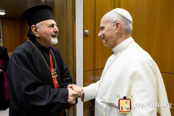 قداسة البابا لاون الرابع عشر يستقبل غبطة أبينا البطريرك مار اغناطيوس يوسف الثالث يونان، الفاتيكان