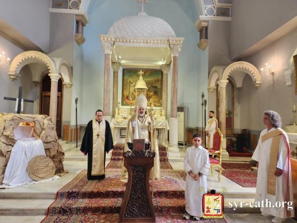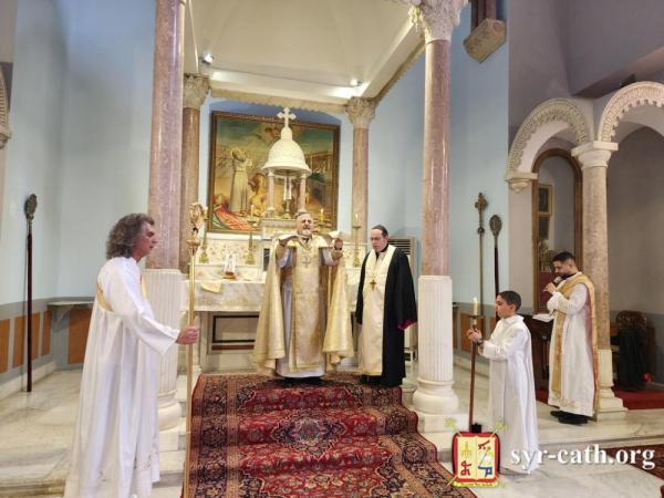عاون غبطتَه الخوراسقف حبيب مراد، وخدم القداس الشمامسة الإكليريكيون، بحضور ومشاركة جمع من المؤمنين.